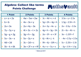 Algebra Collecting Like Terms Points Challenge Worksheet Teaching Resources