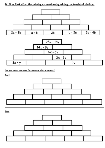 Collecting Like Terms Pyramid Worksheet Teaching Resources