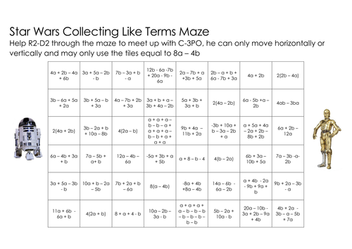 Collecting Like Terms Maze Teaching Resources