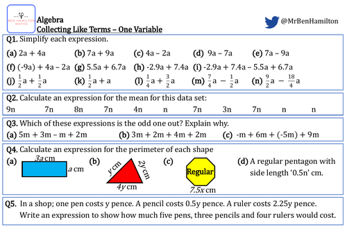 Decide on the maximum number of the coefficients. I made this worksheet as an introduction to collecting like terms. Welcome to the PS Training Services resource shop.