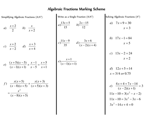 Algebraic Fractions Teaching Resources